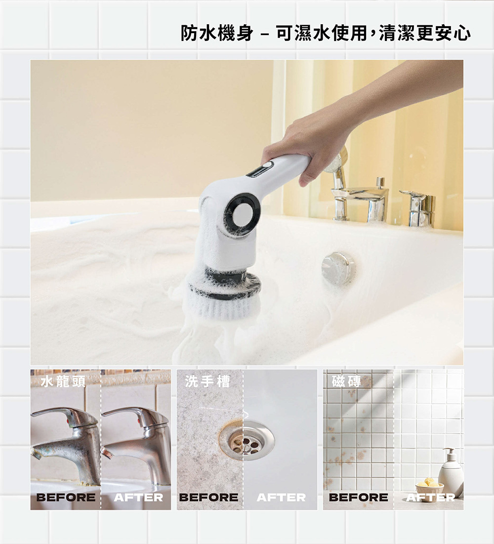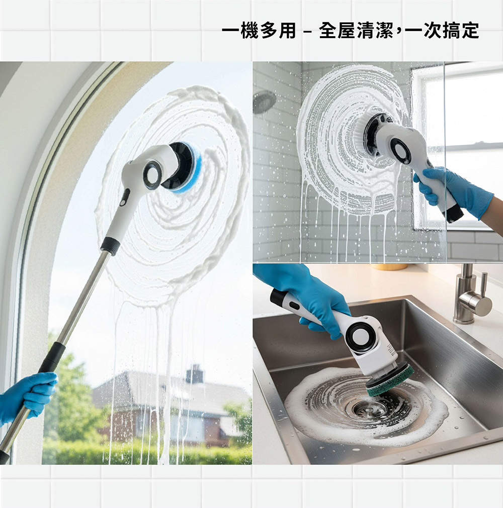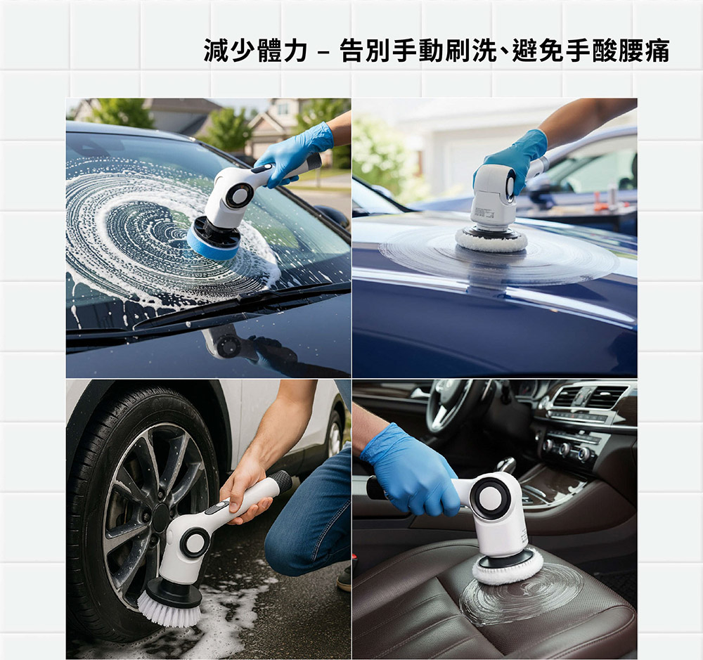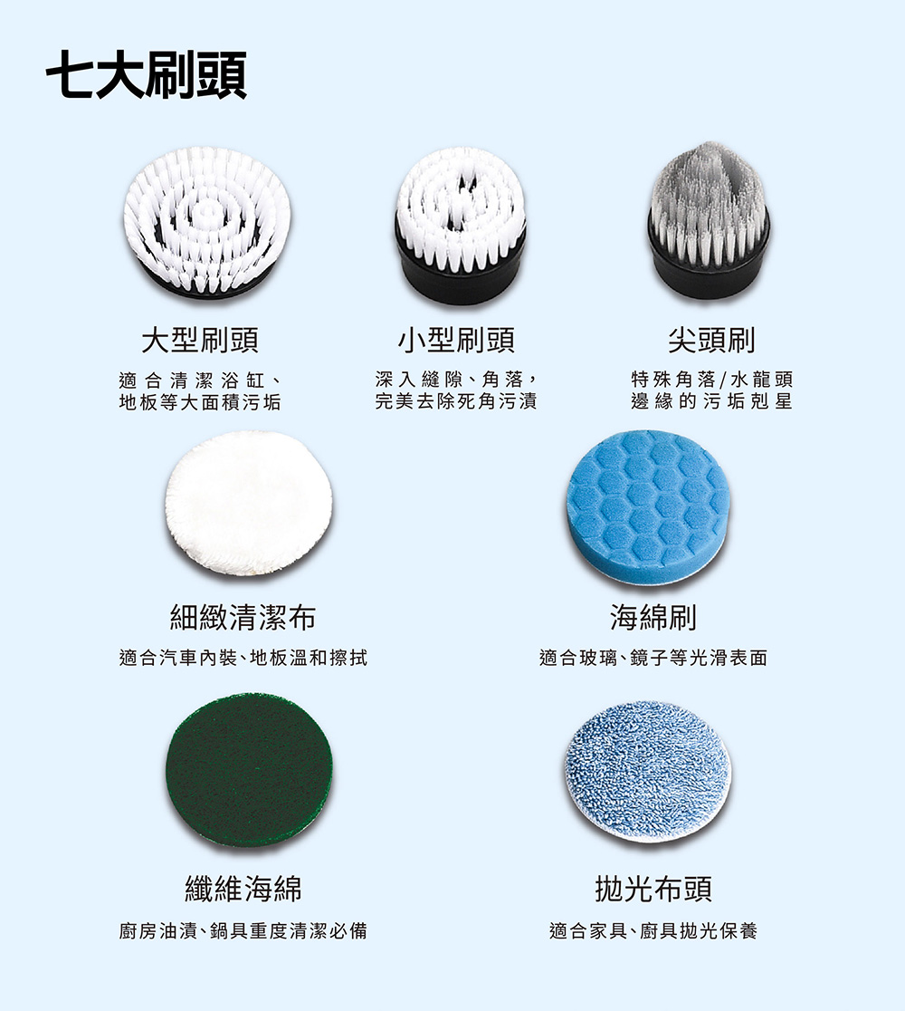 7 款多功能刷頭:浴室、流理台、玻璃、車輪框全能對應