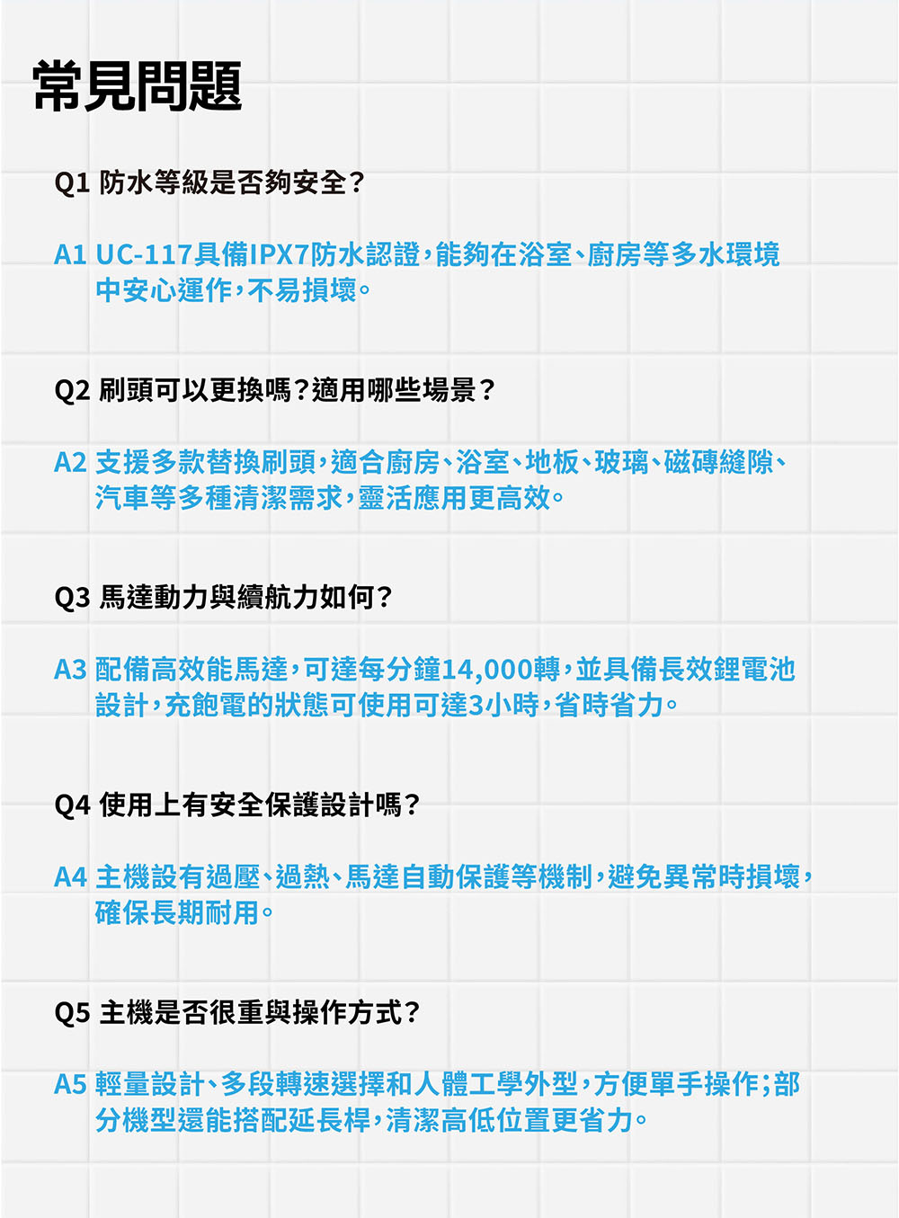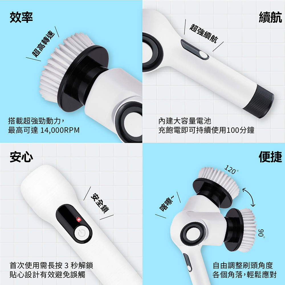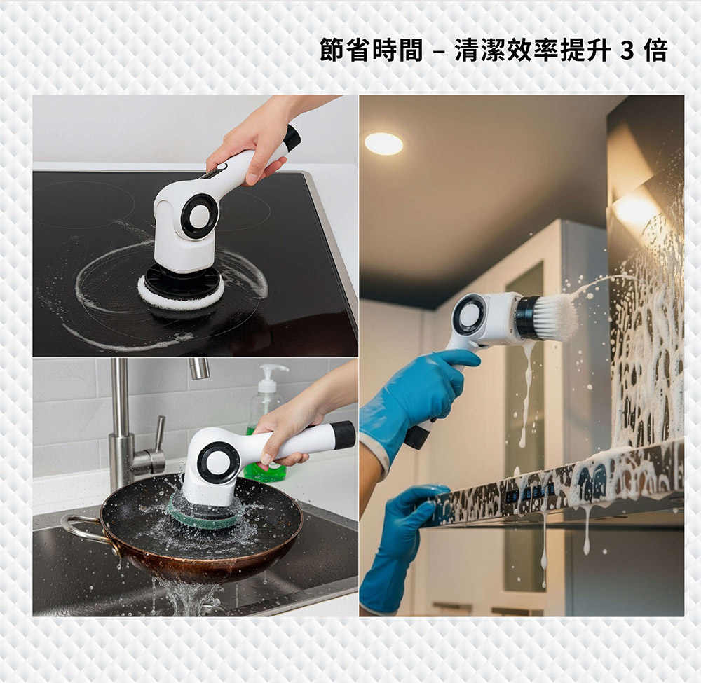7 款多功能刷頭:浴室、流理台、玻璃、車輪框全能對應