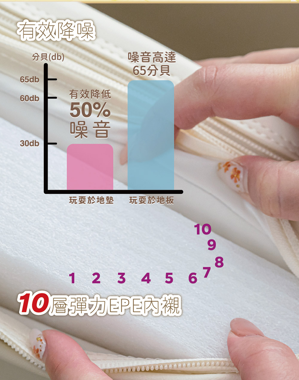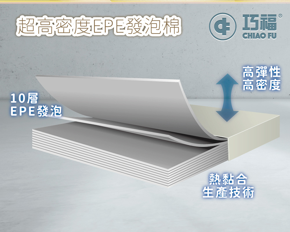■5cm厚度,10層高密度EPE,紮實柔軟彈力