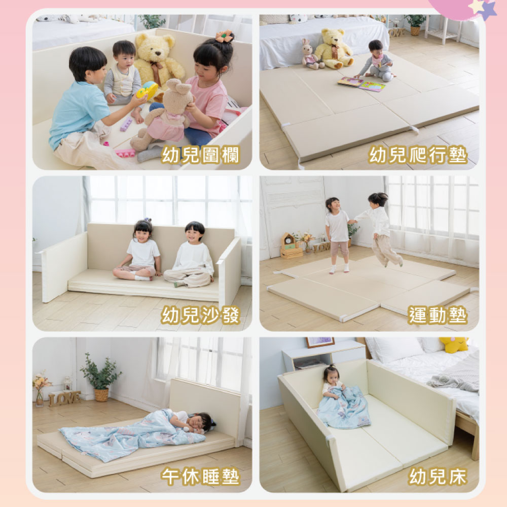 ■一組多用:地墊、圍欄、睡床等用途