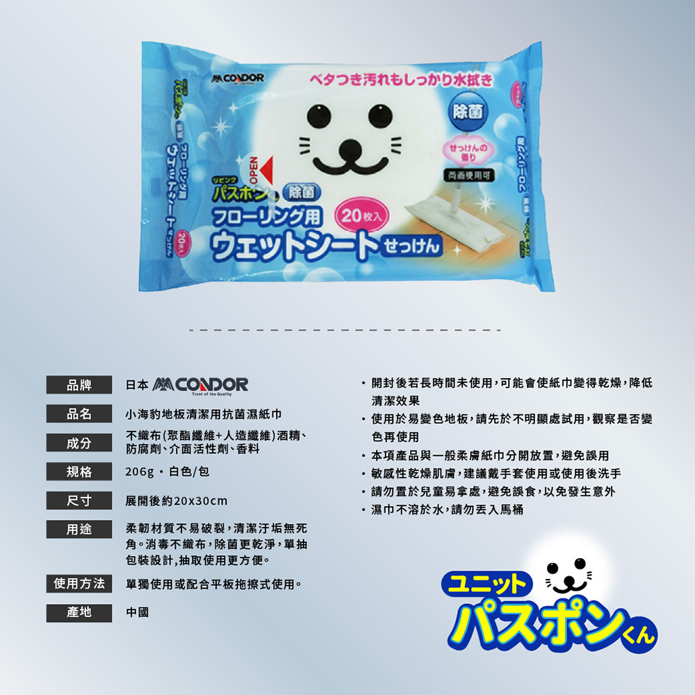產品名稱:【日本山崎】小海豹 地板用濕紙巾20片