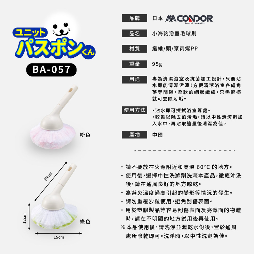 產品名稱:【日本山崎】小海豹_抗菌浴室毛球刷(不含伸縮桿)