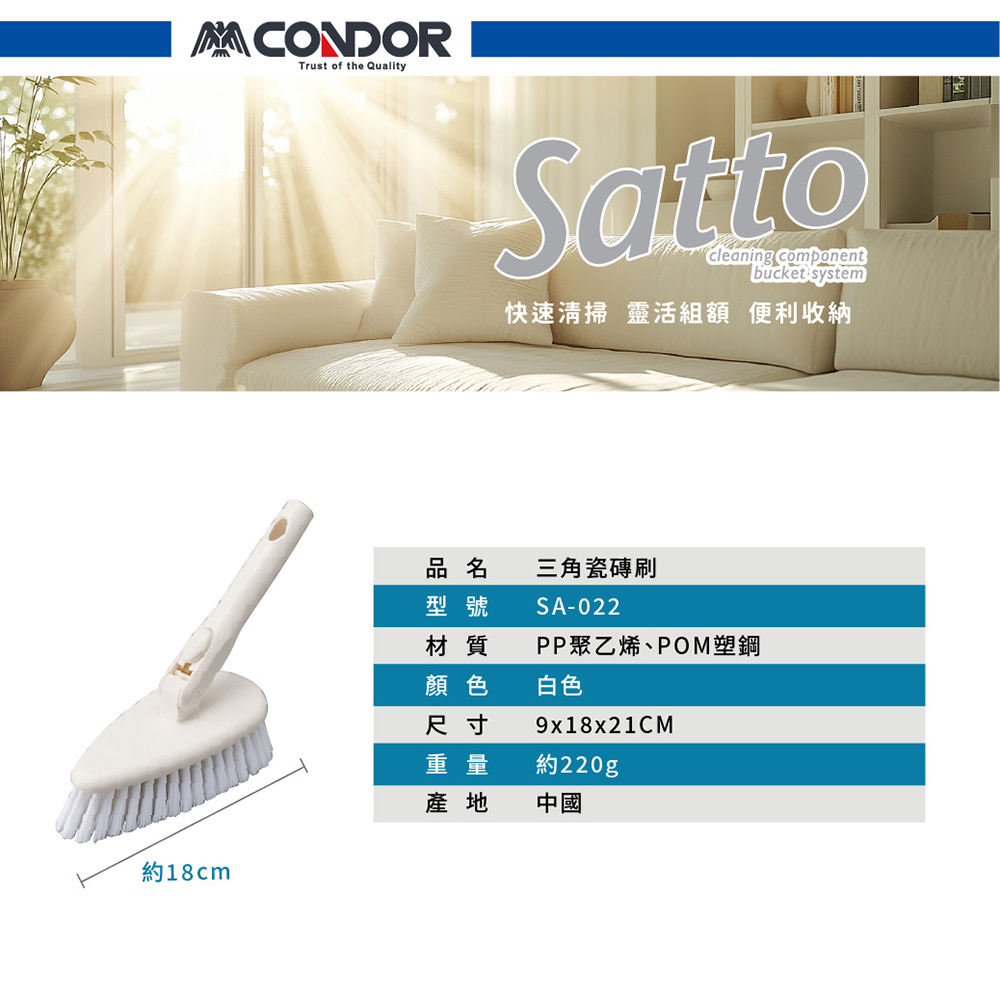 用途:針對轉角、縫隙與頑垢區域刷洗,使用後請沖洗晾乾。
