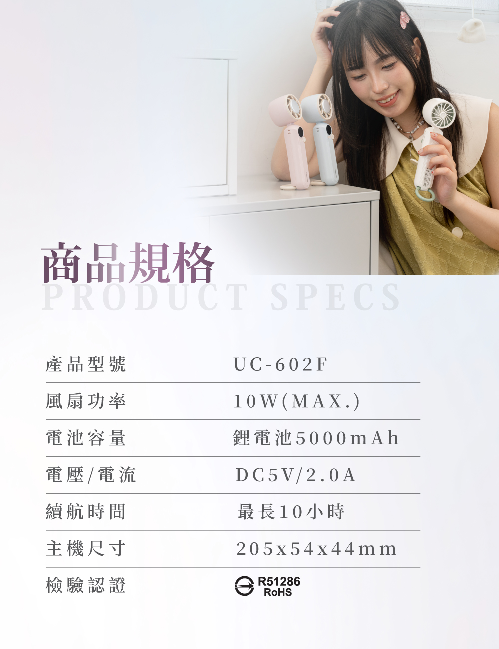 充飽電最長使用可達 10 小時,清涼守護一整天。